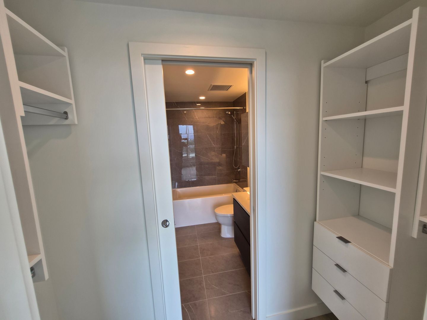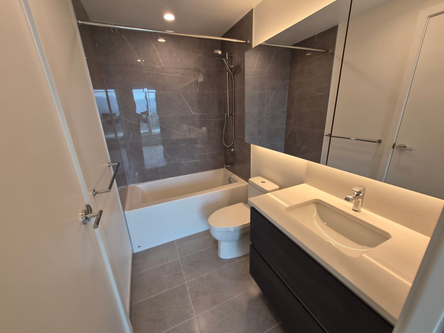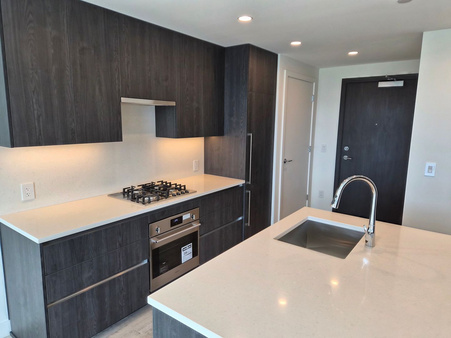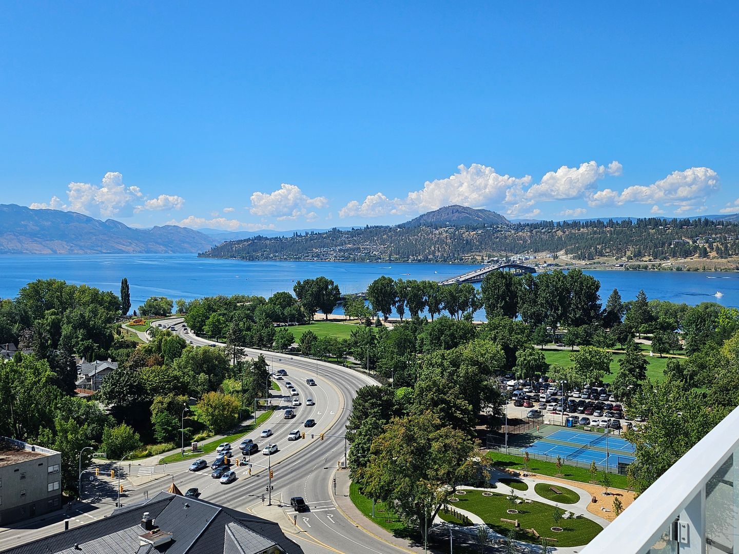 Newly built Water Street by the Park towers. Kelowna's premier new downtown location. Desirable southwest facing one bedroom, one bath home with bridge, lake, and mountain views. Premium appliances, gas range, quartz countertops, marble porcelain tile work, luxury vinyl plank flooring, and quality finishes throughout. In suite laundry and private patio. Unit comes with garage parking stall.