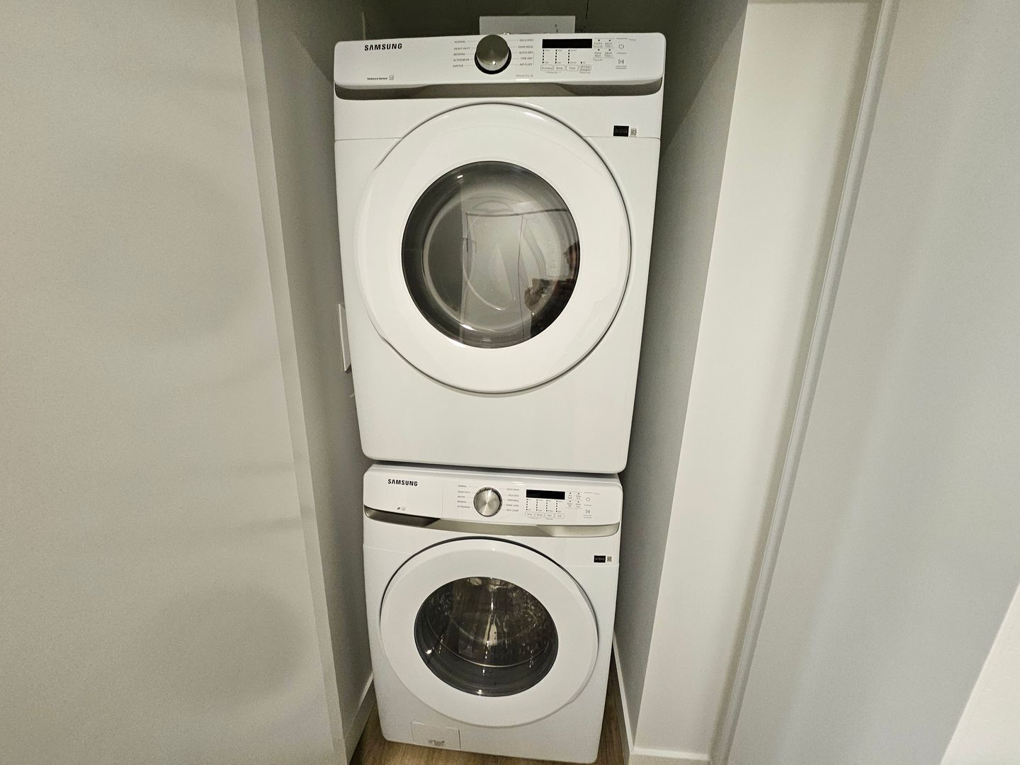 Brand new 2 bed, 2 bath condo located in Downtown Kelowna. Quartz countertops, luxury flooring throughout, stainless appliances including microwave and dishwasher, tile backsplash, glass cooktop, ample storage spaces. Quality fixtures, in suite laundry, one underground parking stall included.