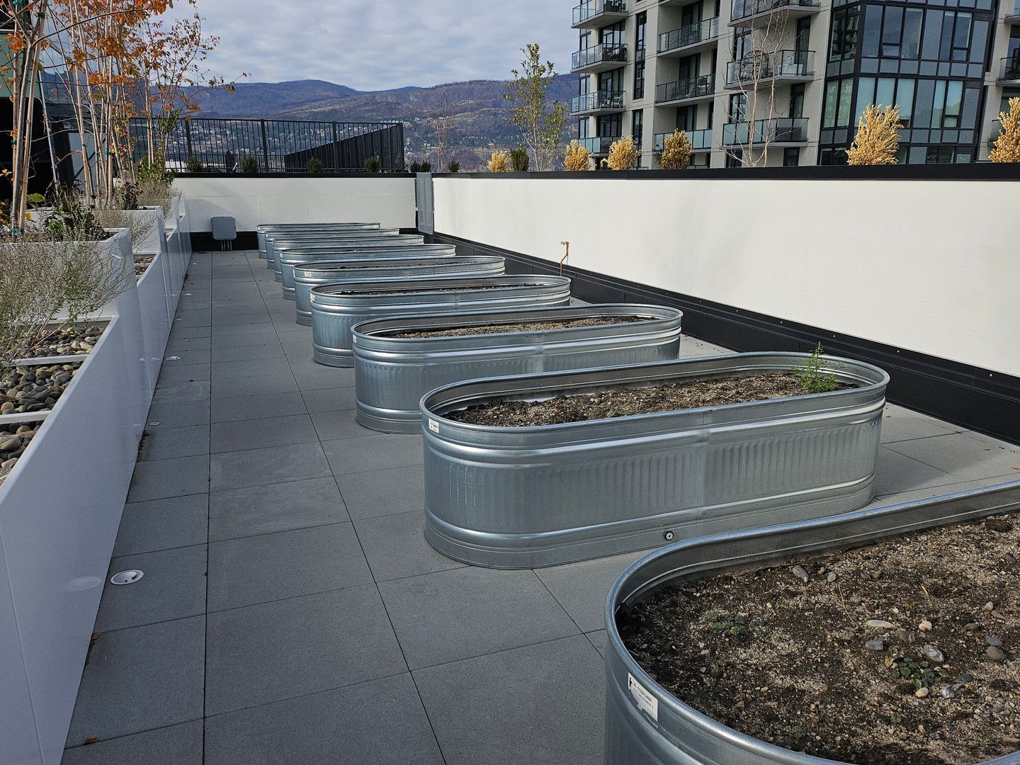 Main street shopping, restaurants, pubs, transit, trails, parks, beaches, Okanagan Lake, all right outside your door. This property is amenity rich. Offering a top floor sky pool and hot tub. 6th floor has fitness room, lounge areas with BBQ's, fire pits, community garden, and Bocce court. 5th floor dog run, relief area, and pet wash station. Two co-working spaces on main floor and top floor. Bike maintenance station also available.